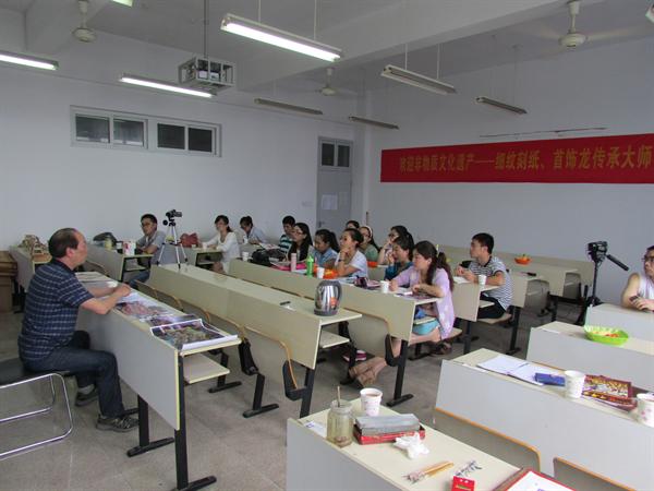 民俗学研究生做了一场题为“妙手生花——省级非遗项目首饰龙制作工艺”的讲座。同来的还有他的徒弟黄孟先生(也是其女婿)。他们还带来了首饰龙制作流程模型、细纹刻纸部分作品、相关书刊、图片等实物资料,并布置在教室里。讲座由2012级研究生郭重孟同学负责操办并主持。免费色情片