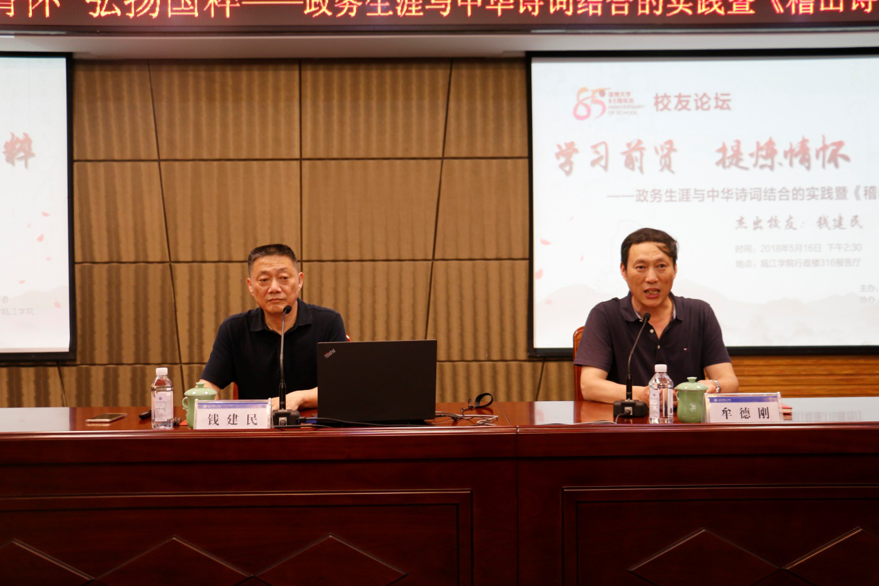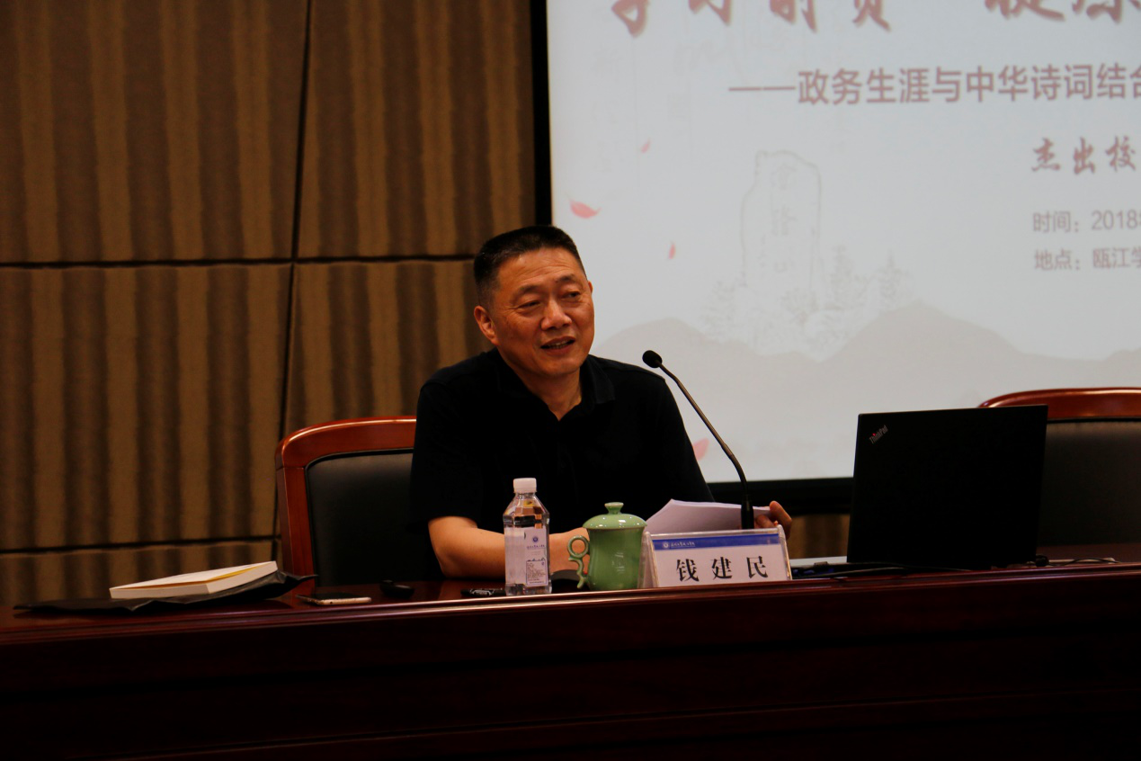 孔子云:诗三百,一言以蔽之,曰思无邪。2018年5月16日14:30,政务生涯与中华诗词结合的实践暨《稽山诗草》介绍学术讲座于我校瓯江学院行政楼316会议室如期举行。主讲人为浙江省人大常委会专职委员、第十二届全国人大代表,同时也是免费色情片 优秀校友钱建民先生。讲座由免费色情片 党委副书记牟德刚主持。