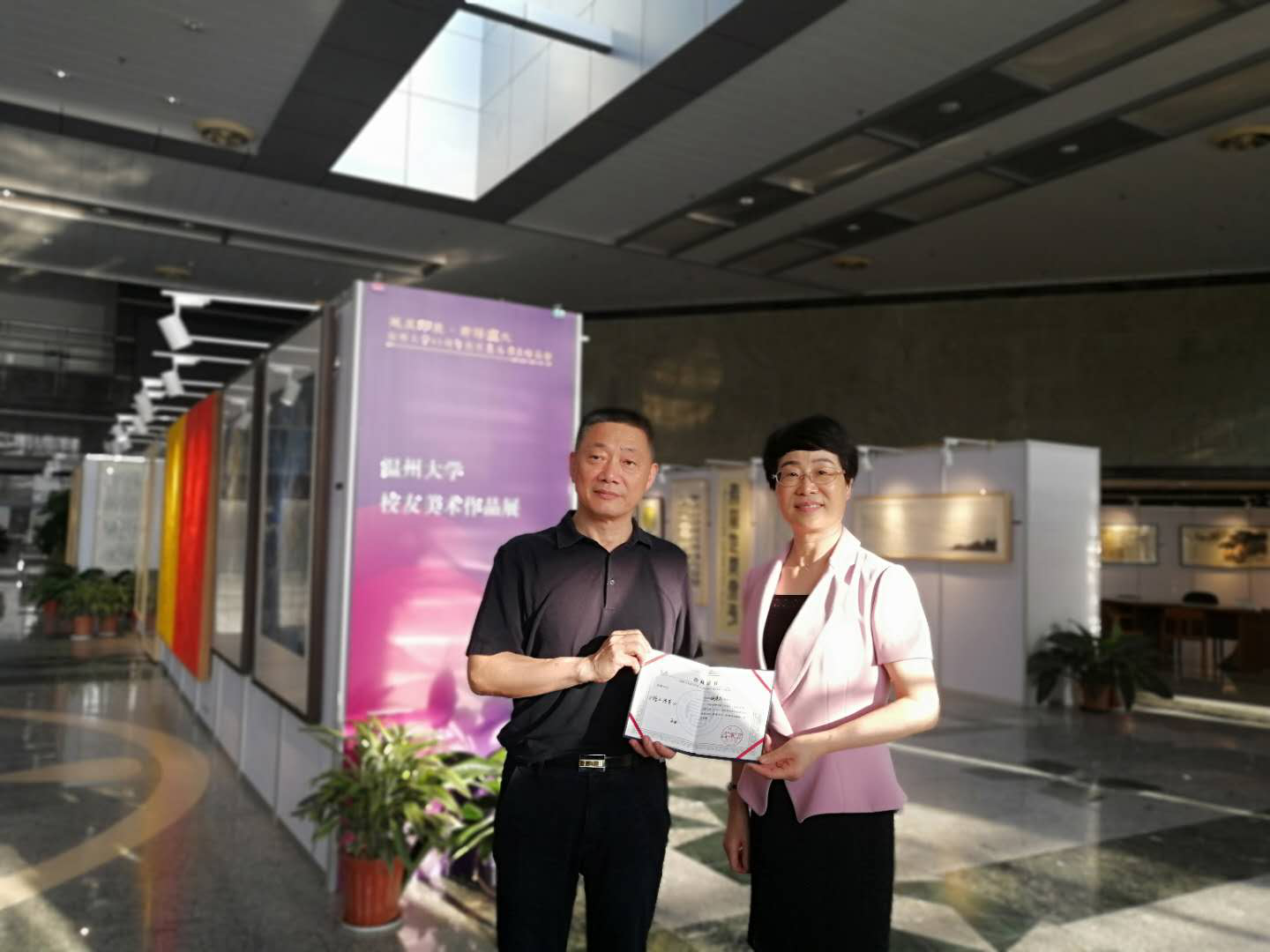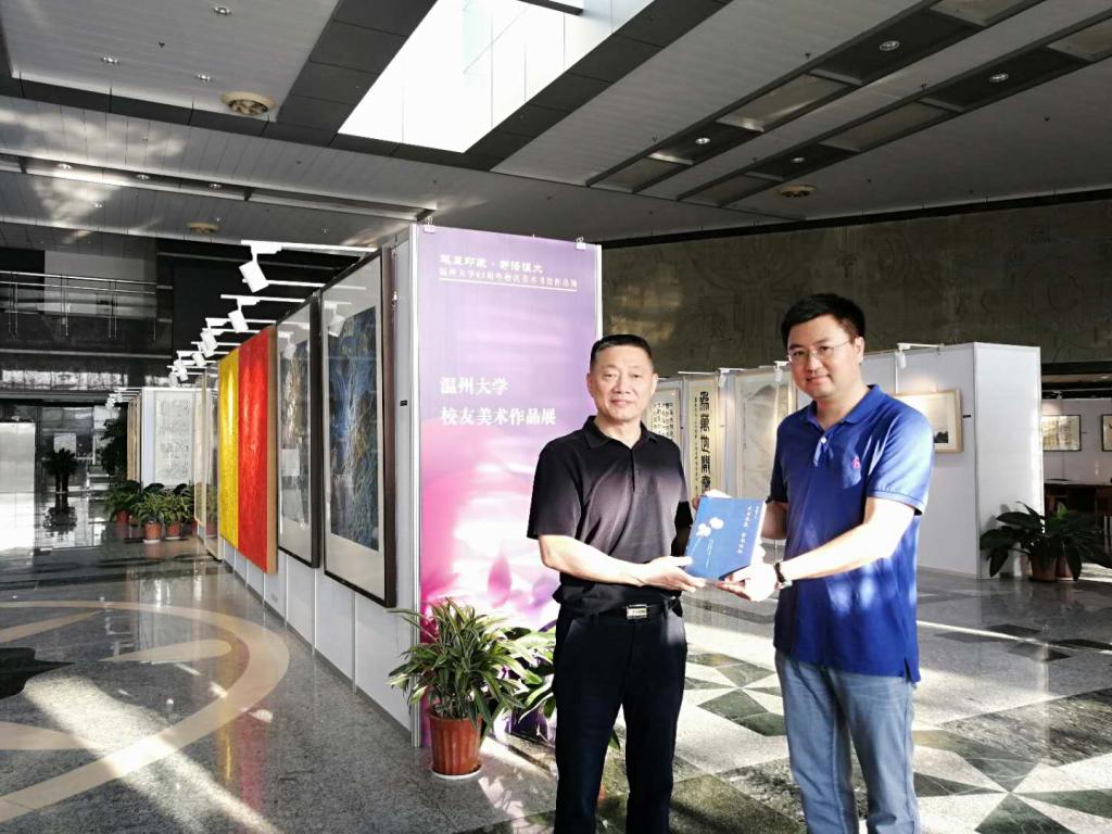 讲座结束后,免费色情片 党委书记林娟娟和免费色情片 院长孙良好陪同钱建民先生去图书馆参观了温大校友美术作品展,林娟娟书记对钱先生向温大捐赠书籍表示感谢并为其颁发了捐赠证书,孙良好院长代表免费色情片 向其赠书。
