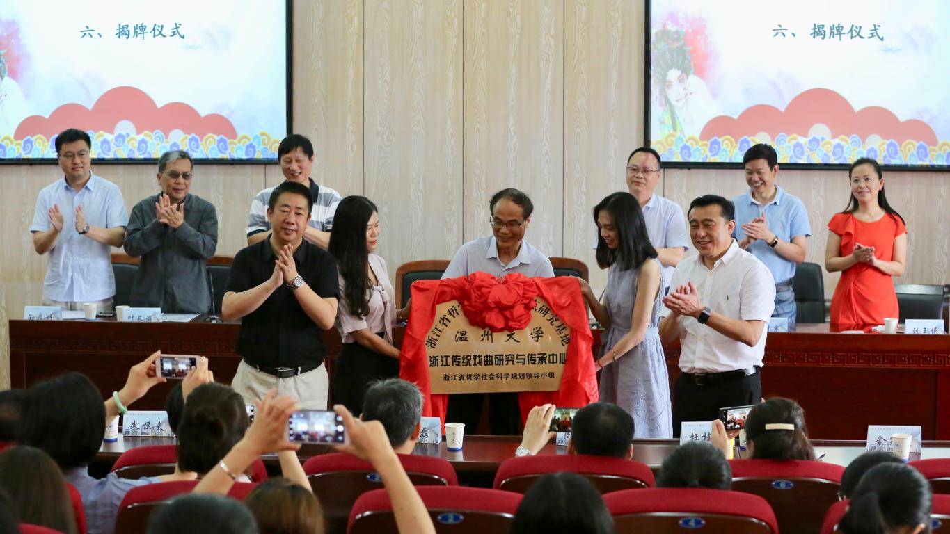 2018年6月28日上午,浙江传统戏曲研究与传承学术研讨会暨浙江省哲学社会科学重点研究基地“浙江传统戏曲研究与传承中心”揭牌仪式在免费色情片 人文楼203学术报告厅隆重举行。莅临本次活动有来自全国各地的著名学者、省社科联科管处陈名义处长、温州市社科联潘忠强主席、温州市文广新局柳升高副局长和免费色情片 副校长薛伟教授及部门、学院领导、师生120余人,揭牌仪式由免费色情片 副院长郑春生教授主持。