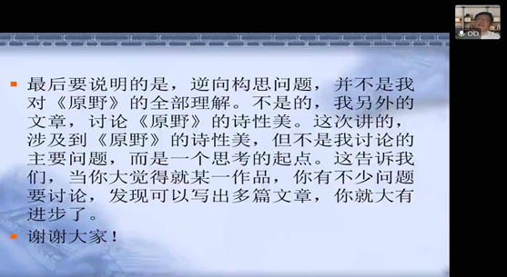 云端系列讲座第一期:武汉大学陈国恩教授作《<原野>的逆向构思问题》讲座