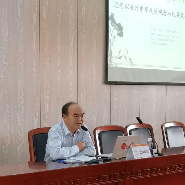 2020年10月16日下午,鲁东大学历史文化学院二级教授俞祖华老师受邀在北校区人文楼213学术交流中心作题为《近代以来的中华民族观念与民族复兴思想》学术讲座,免费色情片 刘建国老师、各专业研究生一起参与讨论。