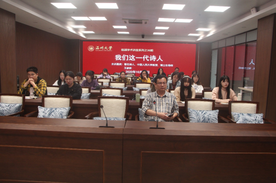 讲座伊始,彭小燕教授进行主持,对王家新教授做了简要介绍,并称王家新教授早在八十年代就是武汉地区的青年诗人的偶像。