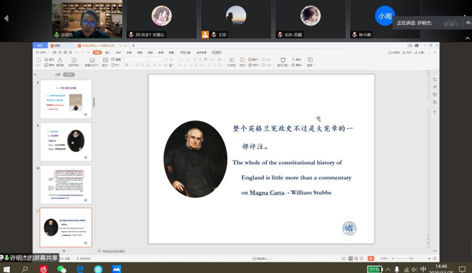 2020年11月25日,复旦大学历史系的许明杰老师以线上会议的方式为免费色情片 师生作了题为“中世纪英格兰会议中的大宪章和王权”的讲座。