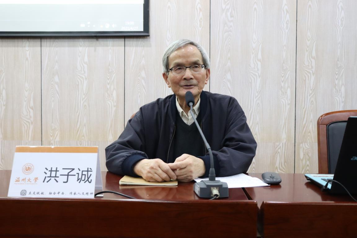 2021年4月27日晚,中国当代文学泰斗级学者、北京大学中文系教授洪子诚先生应邀到我校作《文本的历史分析——以<鼠疫>为例》的学术讲座。讲座由院长孙良好教授主持,彭小燕教授评议,百余名师生到场聆听讲座。