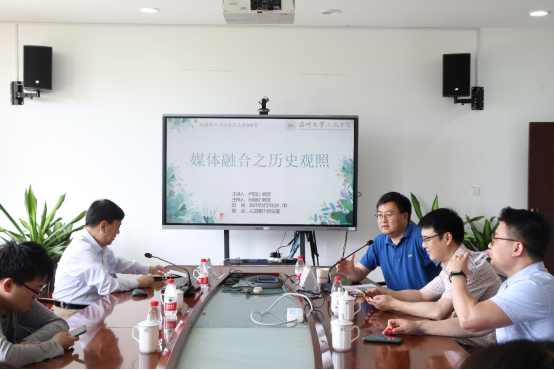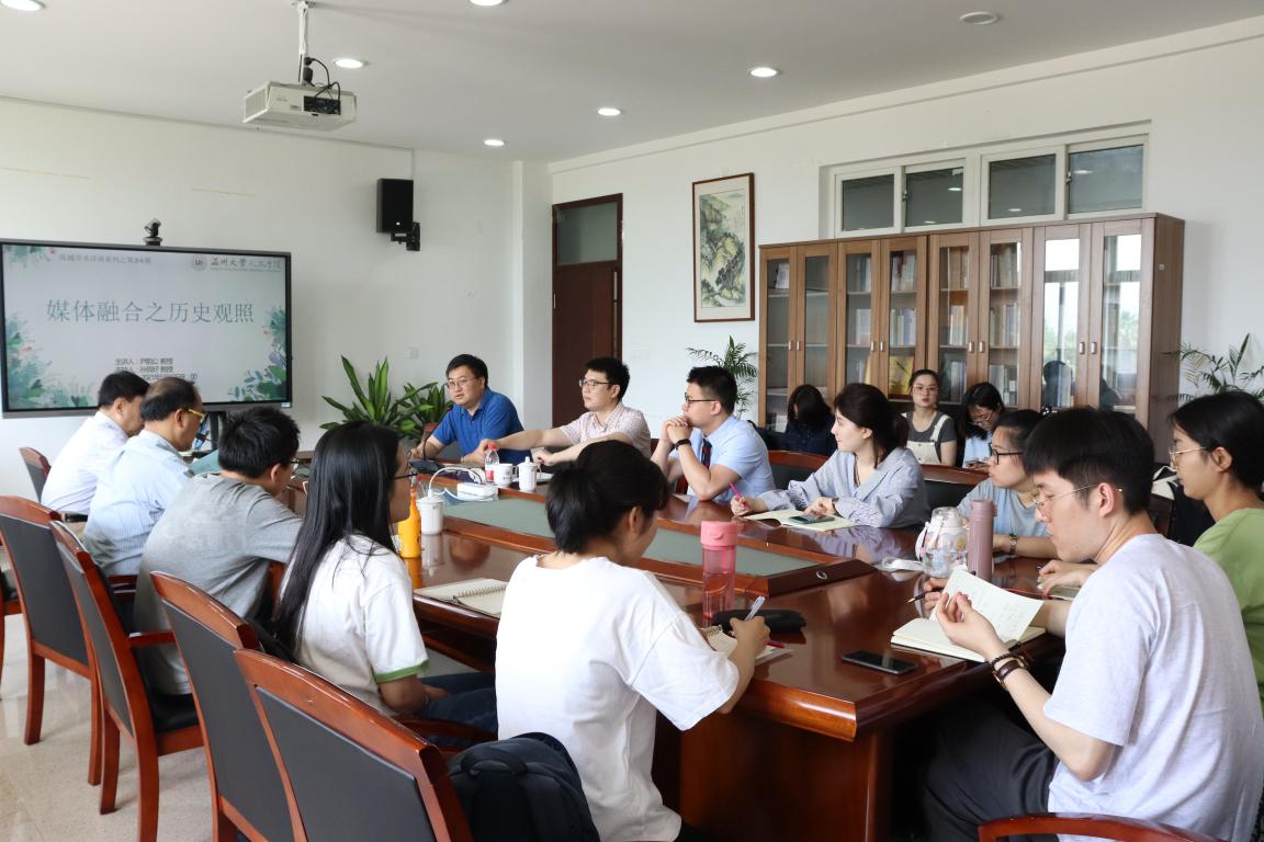 2021年5月10日上午9时,国家哲学社会科学专家咨询委员会委员、国家“万人计划”哲学社会科学领军人才首批入选者、中央文宣系统文化名家暨“四个一批”人才工程首批入选者、新闻出版系统领军人才工程首批入选者、国家社科基金新闻传播学科评审组召集人、国务院学位委员会新闻传播学学科评议组原召集人、中国社科院新闻所原所长、中国社科院中特中心原主任、中央马工程首席专家、湖南师范大学新闻与传播学院院长尹韵公教授应邀在免费色情片 人文楼213会议室作《媒介融合之历史观照》的学术讲座。讲座由院长孙良好教授主持,广告系黄良奇老师、夏雨禾老师、赵屹然老师以及新闻与传播专业研究生参加了听讲。