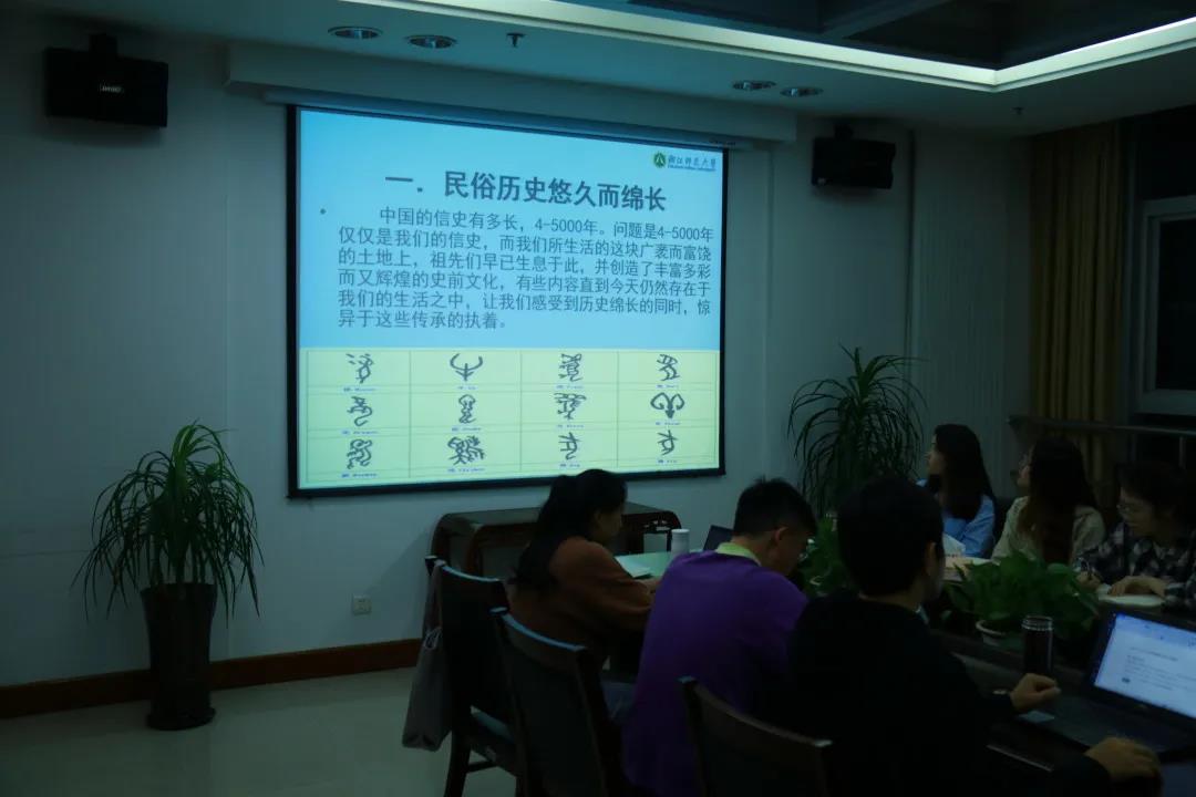 2021年5月24日晚上7点,浙江省非遗研究基地主任,浙江师范大学文传学院陈华文教授在北校区10号楼A305带来“民俗与非遗保护”主题讲座。本次讲座由我院黄涛教授主持,万军、王辉老师出席,民俗学专业的研究生们积极参与。