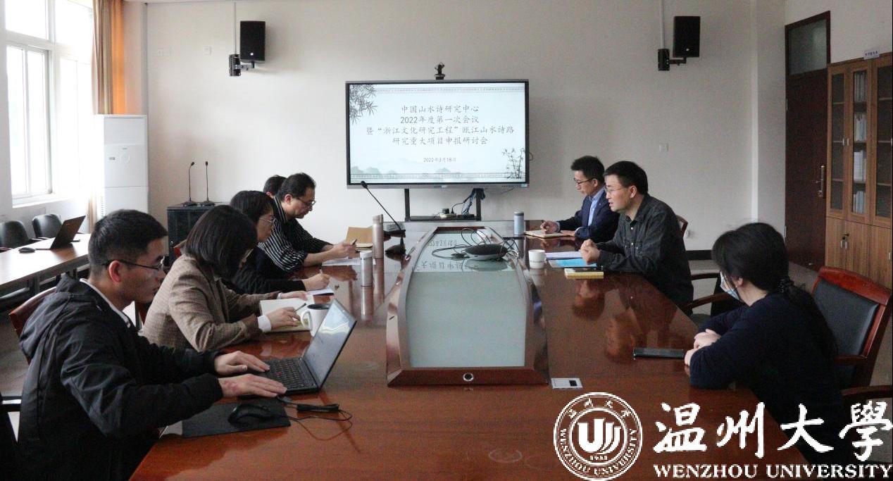 3月18日上午,中国山水诗研究中心2022年度第一次会议暨“浙江文化研究工程”瓯江山水诗路研究重大项目申报研讨会于免费色情片 召开。中心负责人孙良好教授、首席专家陈瑞赞研究员、编纂委员会专家杨万里教授及研究中心金丹霞教授、洪之渊副教授、陈伟娜博士、苏碧铨博士、王朋飞博士等参会。