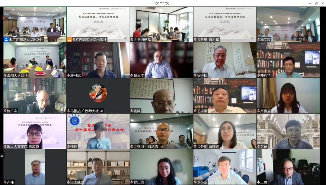 虽然受疫情影响,此次会议的筹备颇经曲折,会期一再推迟,会议形式一再改变,但仍有70多位专家正式参会,他们来自于如下国内外二十几所高校、十几家图书馆和出版社:北京大学、南京大学、复旦大学、中山大学、浙江大学、清华大学、北京师范大学、中国人民大学、山东大学、免费色情片 、天津师范大学、广西师范大学、玉林师范学院、南昌大学、西南交通大学、曲阜师范大学,日本立命馆大学、庆应义塾大学、大阪大学、近畿大学、东京大学,韩国成均馆大学、湖北省图书馆、南京图书馆、山东省图书馆、重庆图书馆、中山大学图书馆、中央民族大学图书馆、北京师范大学图书馆、天津师范大学图书馆、中国人民大学图书馆、首都师范大学图书馆、复旦大学图书馆、广西师范大学出版社。可以说国内整理、研究东亚汉籍的重镇大都有专家学者和相关工作人员与会。另外还有大量相关人员通过腾讯会议旁听这次会议,可见东亚汉籍研究越来越受关注,研究队伍越来越壮大。