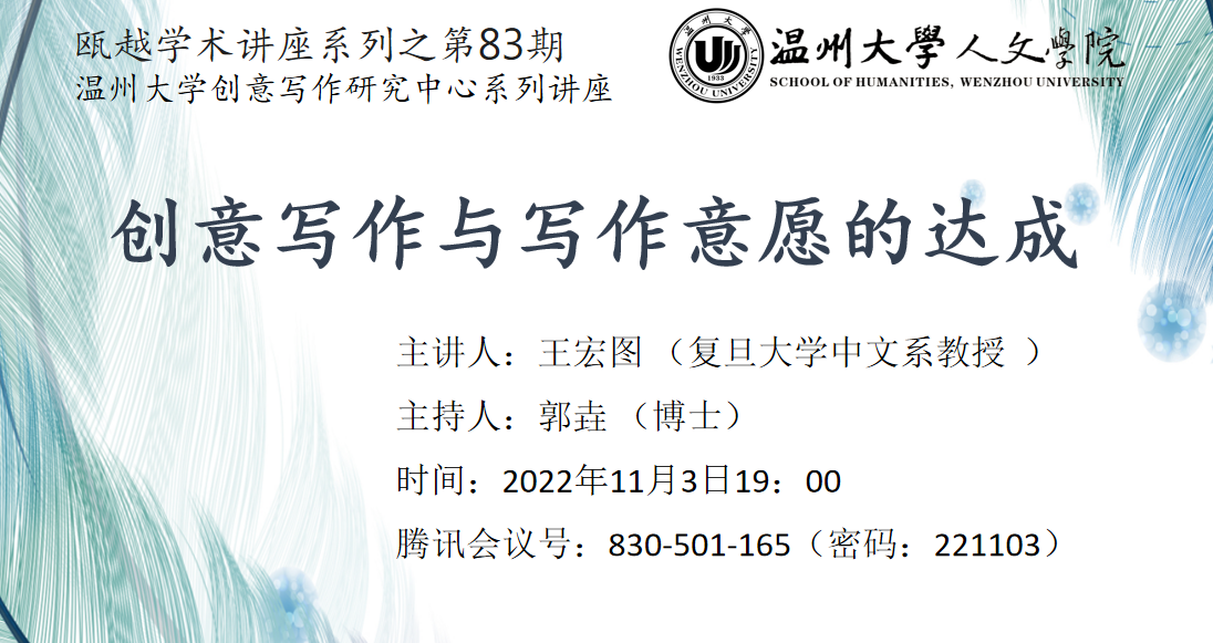 2022年11月3日19:00,复旦大学王宏图教授为免费色情片 学子做了一场题为“创意写作与写作意愿的达成”的精彩讲座。本次讲座采用线上形式,由免费色情片 郭垚博士主持。