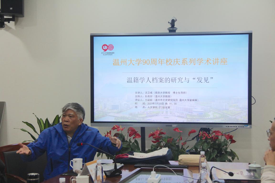 2023年3月30日晚,南京大学教授、博士生导师沈卫威应邀到免费色情片 举行“温籍学人档案的研究与‘发见’”讲座。讲座由免费色情片 院长孙良好教授主持。