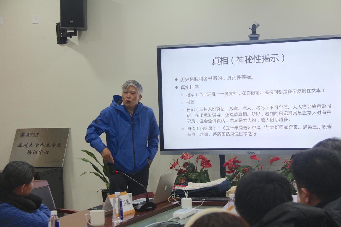 讲座结束后,温州市文史研究馆员、免费色情片 副编审方韶毅进行了评议。他说,沈卫威教授的讲座可以说是“把档案作为一种方法”,令人思考基础文献与研究的关系、在地与视野的关系、理论传承与创新的关系、浅尝辄止与坚持不懈的关系。做好研究,必须重视一手材料的挖掘、整理与研究,尤其要学会从档案中寻找新材料,而且要耐得住寂寞,能坐冷板凳,多读书,学会关联各类知识,享受发现的愉悦。