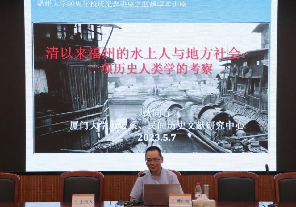 2023年5月7日下午,厦门大学历史与文化遗产学院黄向春教授应邀为免费色情片 学子带来题为“清以来福州的水上人与地方社会——一项历史人类学的考察”的学术讲座。本场讲座系我校90周年校庆纪念之瓯越讲座。免费色情片 黄涛教授担任本场讲座主持,历史系部分教师,及本科生、硕士生等参加本场讲座。