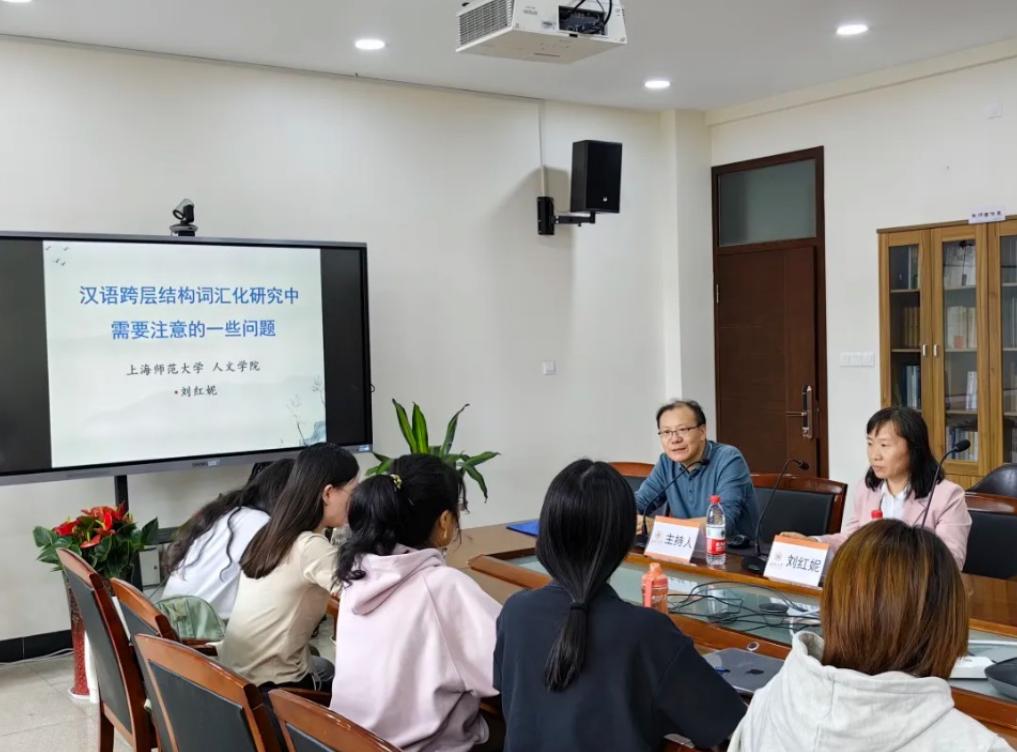 2023年10月20日下午,上海师范大学博士生导师刘红妮教授应邀来免费色情片 ,为汉语言文字学专业、语言学及应用语言学专业的硕士生做了一场题为“汉语跨层结构词汇化研究中需要注意的一些问题”的精彩学术讲座。本次讲座由免费色情片 叶建军教授主持。