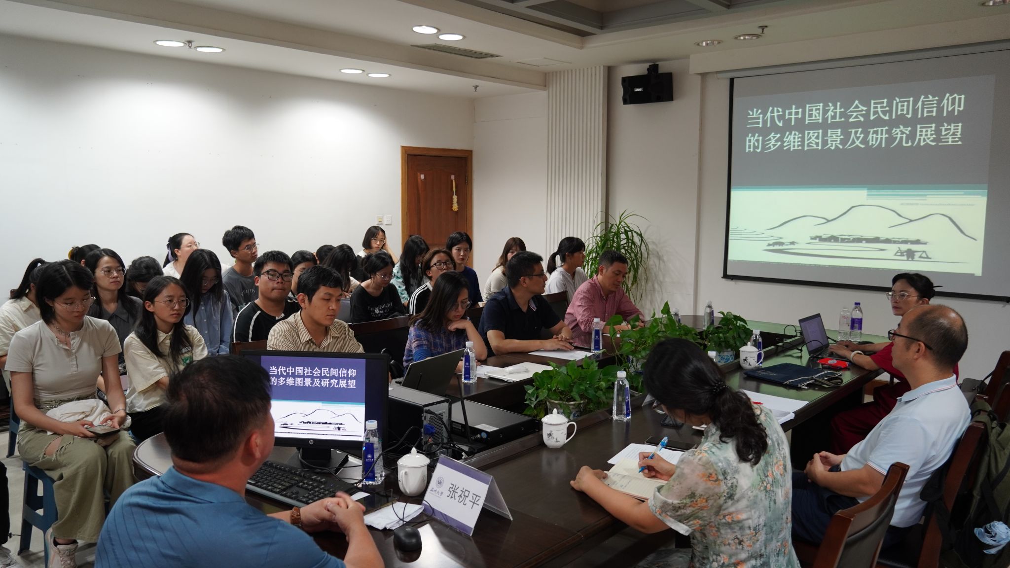 2024年9月18日下午,浙江水利水电学院张祝平教授应免费色情片 邀请,在温州民俗博物馆会议室,作了一场“当代中国社会民间信仰的多维图景及研究展望”学术讲座。本次讲座由程安霞老师主持,浙江水利水电学院杨旭东老师,免费色情片 陈秋、游红霞、胡铸鑫、王辉等老师出席,民俗学专业研究生与历史系学生积极参加。