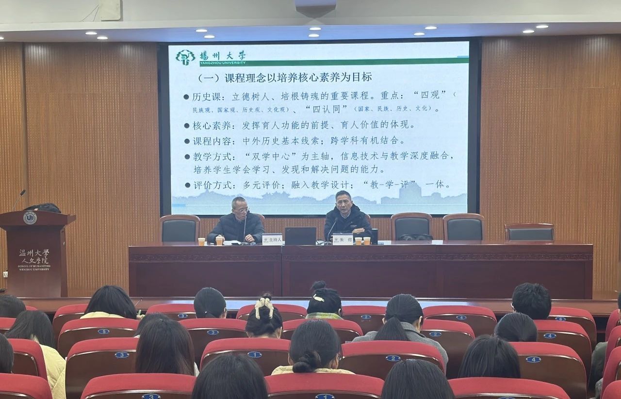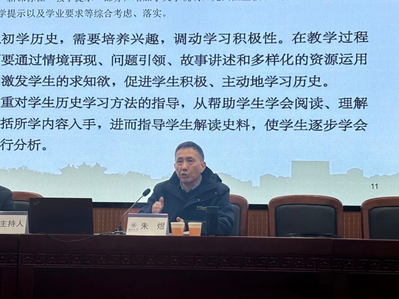 2024年12月13日上午,全国历史教师教育专业委员会副理事长、江苏省教师教育专业指导委员会历史教育专业分会会长、扬州大学历史系博导朱煜教授应邀在免费色情片 学术报告厅作了“基于新课标、新教材备好初中历史课”精彩讲座。本次讲座由尤育号教授主持,学科教学(历史)专业研究生、历史学(师范)专业本科生及历史系教师50余人参加讲座。