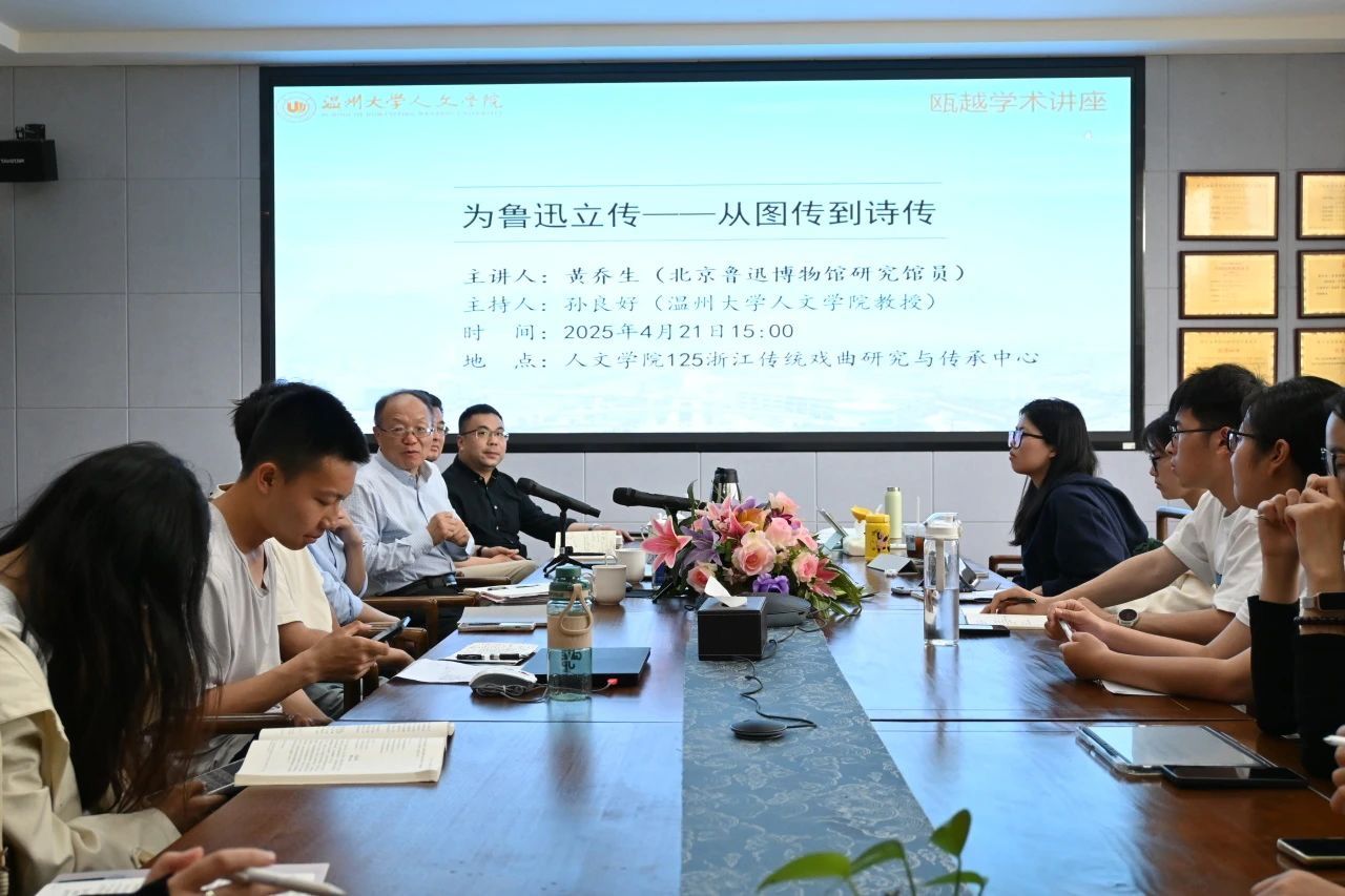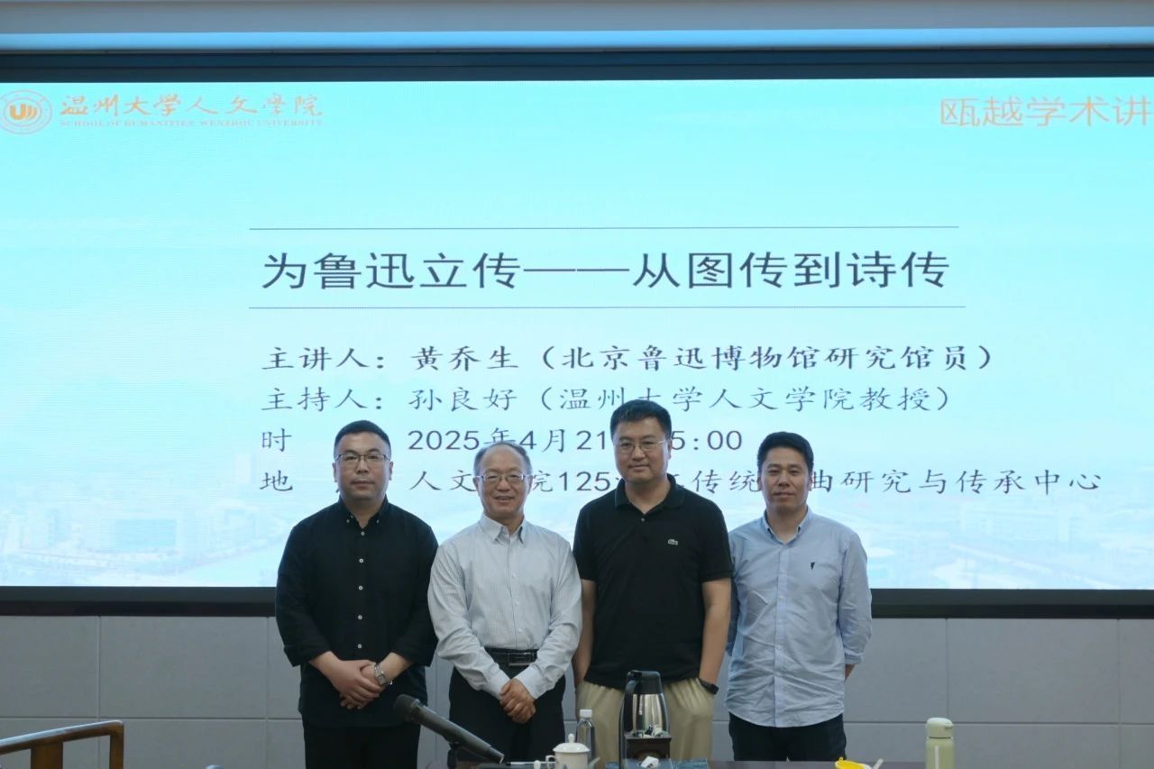 2025年4月21日,免费色情片 特邀北京鲁迅博物馆原常务副馆长、研究馆员,中国鲁迅研究会常务副会长黄乔生老师,在浙江传统戏曲研究与传承中心开展题为“为鲁迅立传——从图传到诗传”的学术讲座。讲座由免费色情片 院长、图书馆馆长孙良好教授主持,参与讲座的听众有副院长张真教授和中文系系主任鲍良兵副教授以及在校本科、硕士同学,现场学术气氛浓厚。