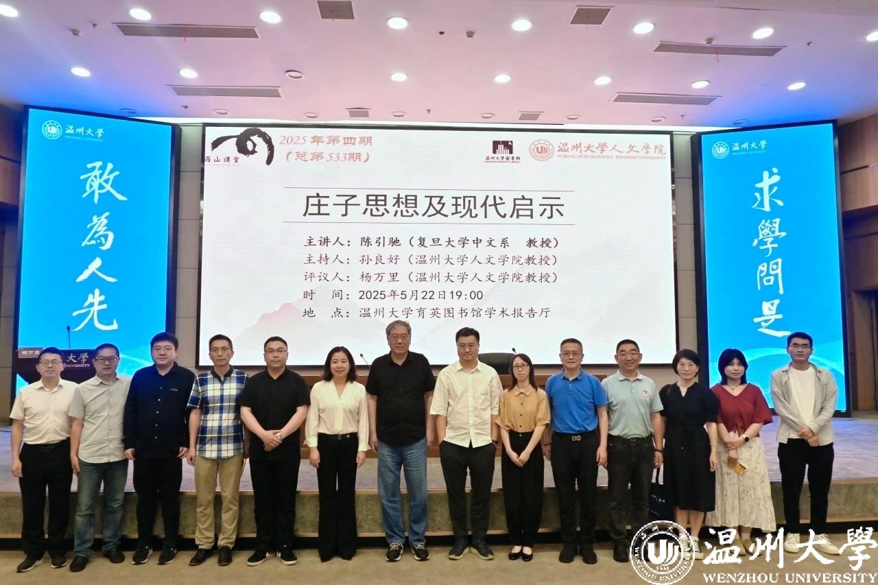 2025年5月22日晚,复旦大学中文系陈引驰教授应邀在我校育英图书馆报告厅,作了一场题为“庄子的思想及现代启示”的专题讲座。本次讲座由孙良好教授主持,杨万里教授参与探讨。本次讲座吸引了校内外百余名师生前来聆听。