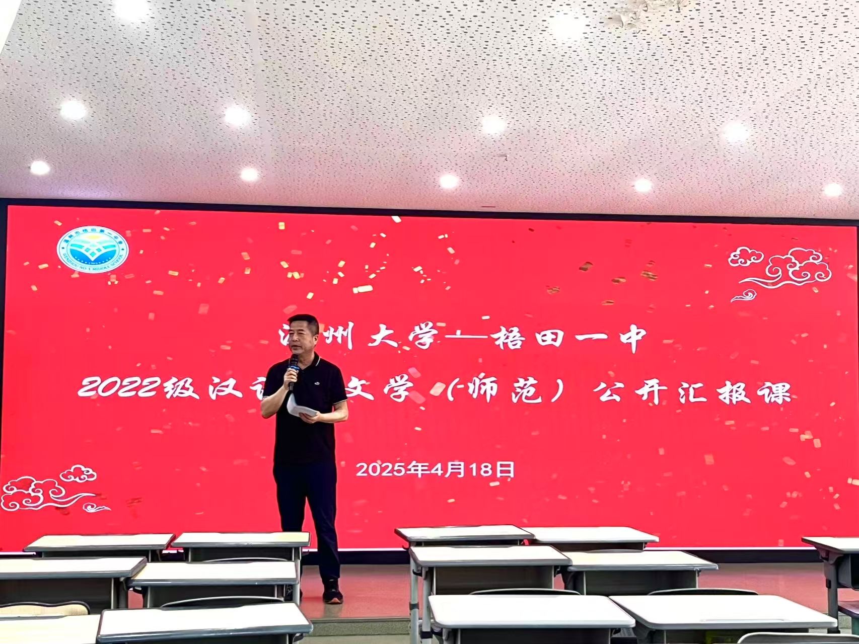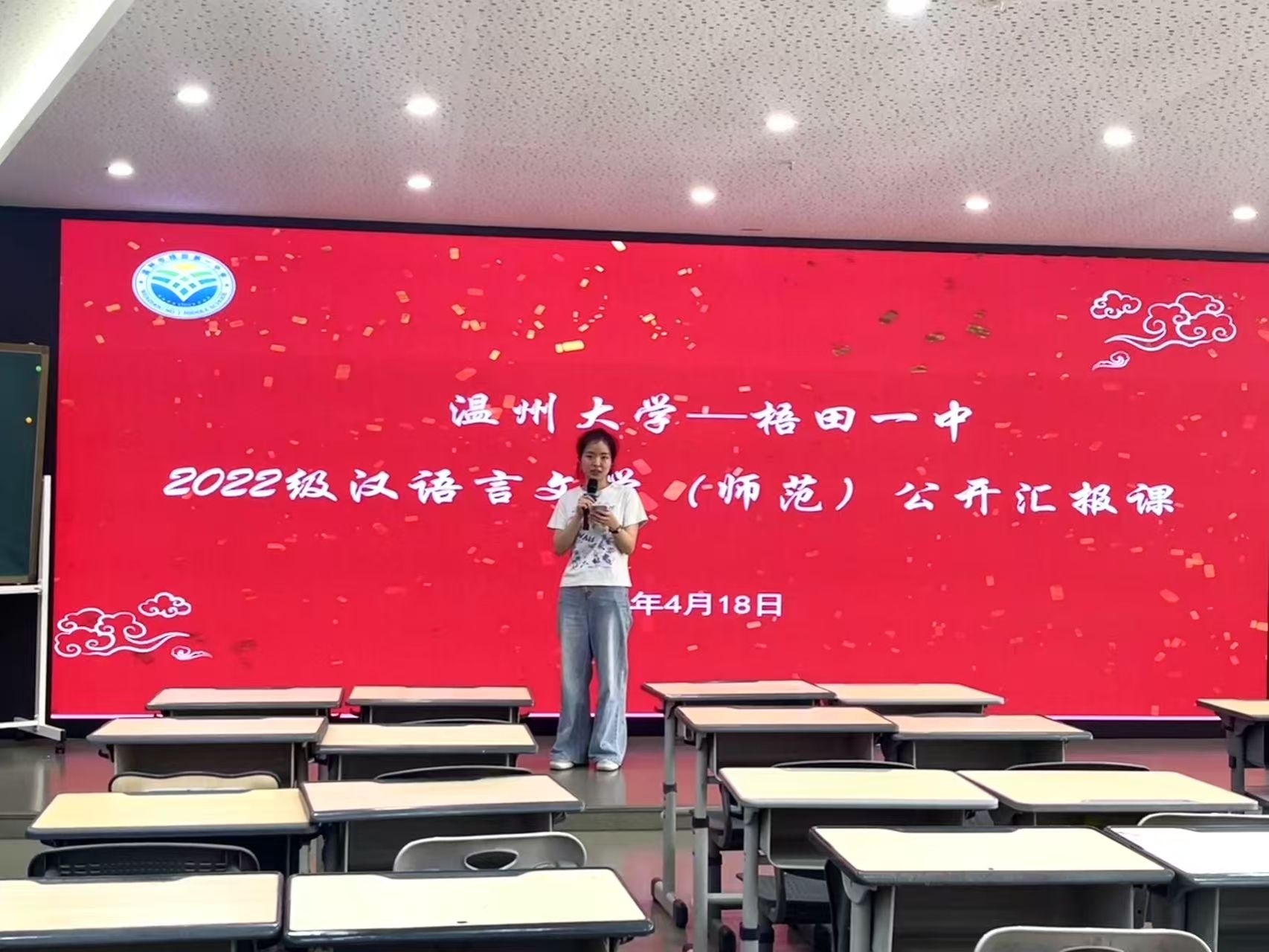 暮春之韵正悠扬,实习之旅亦收章。4月18日下午,免费色情片 选派的十七位实习生,于梧田一中顺利完成了为期两个月的实习任务,为这段实习征程画上了圆满的句号。值此实习生涯收官之际,实习生们经过精心筹备,推选代表开展了一场精彩纷呈的展示活动,全面汇报了两个月来在梧田一中实践所取得的丰硕成果。