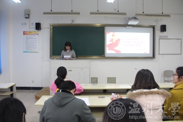 大会分为两个议程,一是接收陈阳、王红同志为中共正式党员;二是各党小组进行本月的党课学习汇报。首先,两位预备党员对预备期间的思想做了简单的汇报,并由各自的两位培养联系人介绍其优点、不足以及是否符合转正要求。随后是党员投票环节,经各位党员一致同意后,由李林军宣布两名预备党员成为正式的中共党员。第二项议程为各党小组党课学习汇报。第一小组的学习主题为“建设生态文明,谱写美丽中国”,应雪莲同志认为:“金山银山,不如绿水青山,党员同志应带头保护生态环境和我们的美好家园。”第二小组的学习主题为“打铁还需自身硬——关于全面从严治党”,李永刚同志说:“打铁还需自身硬,惩治和打击腐败应该要从党内开始,把权力关进制度的笼子。”第三小组以“以新发展理念引领发展——关于树立创新、协调、绿色、开放、共享的发展理念”为学习主题,王红同志认为“共享单车”在对社会能产生积极作用的同时也带来一些问题,因此要加以监管。第四小组则学习了“红船精神”,黄春迎同志认为共产党员要传承和弘扬“红船精神”,让“红船精神”迸发出更加夺目的光彩。