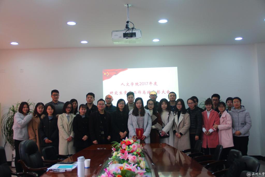 1月19日下午,免费色情片 2017年度研究生党务工作总结表彰大会在人文楼213会议室举行。参加本次大会的有学院党委书记吴静、党委副书记朱启鑫、学生科副科长刘纪峰以及部分研究生党员代表和群众代表。