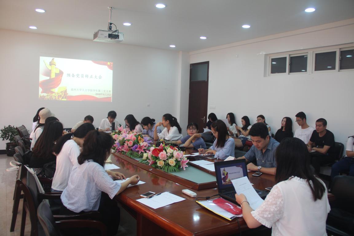 2018年6月7日上午,免费色情片 学生第三党支部于北校人文楼213会议室召开本学期预备党员转正大会,会议由学生第三党支部书记徐珍主持。