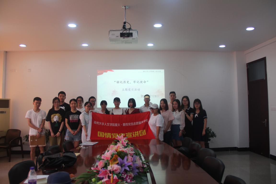7月3日上午10点,免费色情片 学生第一党支部携手国情党史宣讲团于人文楼213会议室开展“铭记历史,牢记使命”主题党日活动,庆祝中国共产党成立97周年。本次活动由学生第一党支部书记李林军主持,国情党史宣讲团负责人赵飞跃同志宣讲,支部全体成员参与。