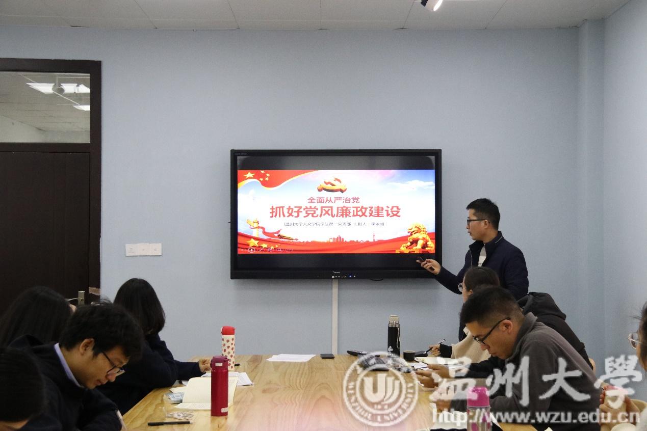 2018年12月23日下午,免费色情片 “星火·薪传”党员志愿服务中心之国情党史宣讲团携手学生第一党支部和第二党支部,于北校区外语楼221党员之家会议室举办了“全面从严治党,抓好党风廉政建设”主题宣讲活动。本次宣讲活动由国情党史宣讲团成员李永刚进行宣讲,由免费色情片 学生第二党支部书记陈赛君主持。