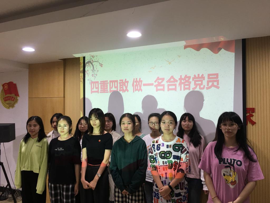2019年10月16日,七名来自免费色情片 学生第四党支部的党员同志与七位入党积极分子齐聚超豪学区党员之家,开展了一场主题为“四重四敢,做一名合格党员”的党日活动。在重温入党誓词、重忆入党经历的同时,寻找与回首入党之初心、入党之使命。