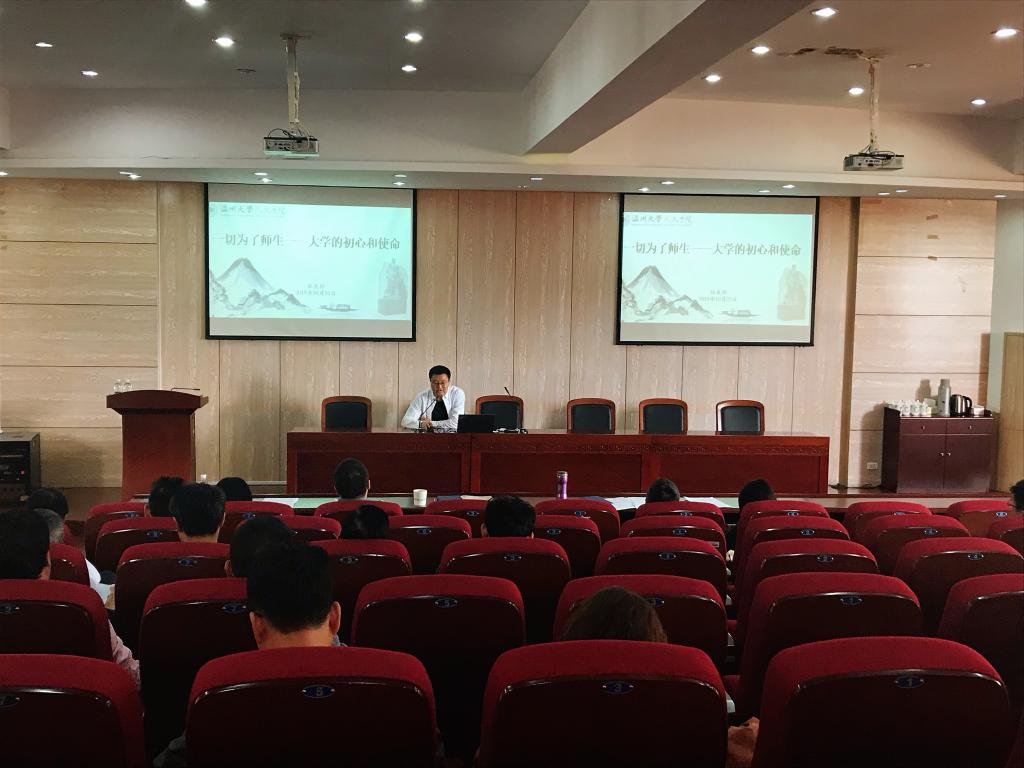 孙院长指出,学院的发展仍要坚守“立足瓯越,融合中西,传承人文精神”的理念,追求五个“一流”,着力打造八大品牌。最后,孙院长希望学院全体教师立足学院和学校发展目标,守初心担使命,扎实努力做好本职工作,为学院和学校跨越发展做出应有贡献。