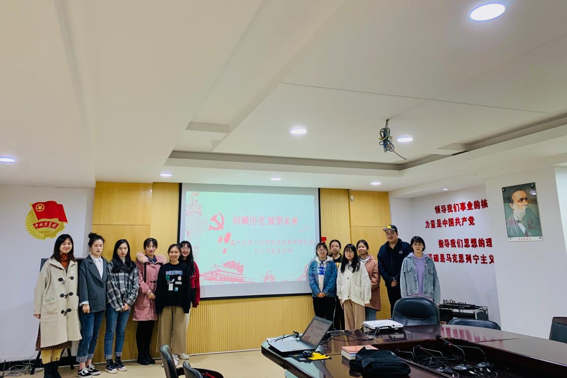2019年12月15日,免费色情片 学生第四党支部的十三位同志相聚在超豪学区四号楼党员之家,开展了一场以“回顾历史,展望未来”为主题的党日活动。在党史知识的趣味竞答过程中,各位党员强化了对党的理论认识,从党史中学习了经验和方法,进而更好地展望未来。