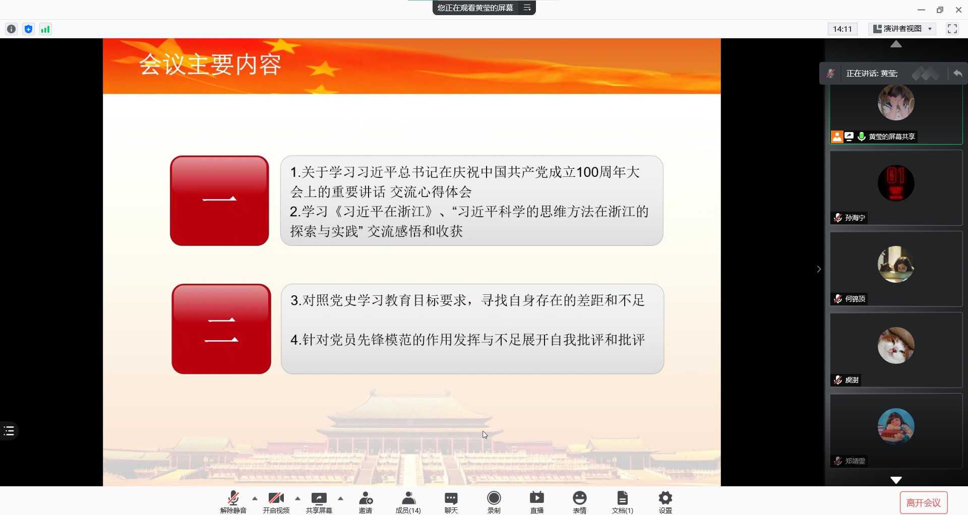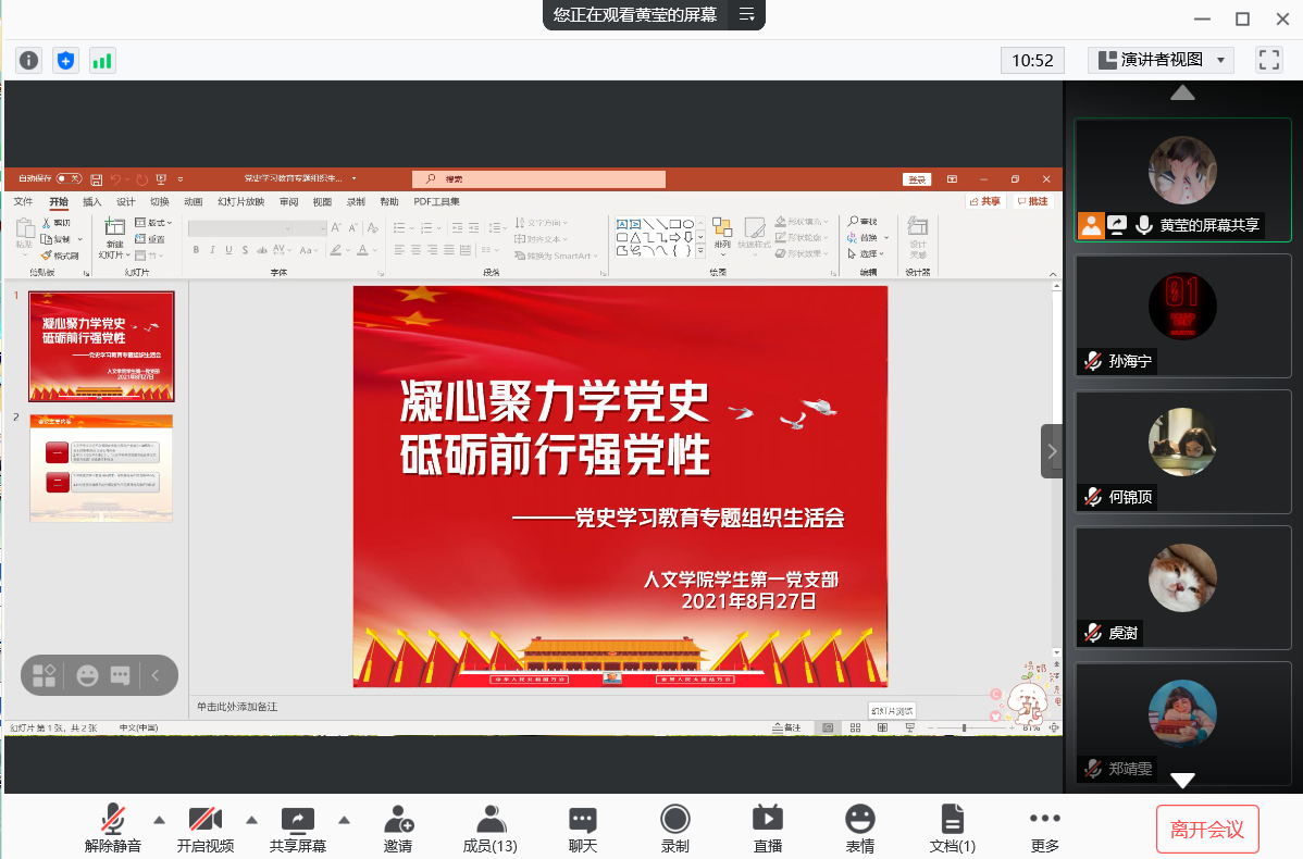 2021年8月27日,在全国疫情形势仍然紧张的特殊时期里,免费色情片 学生第一党支部首次采用线上会议形式举办了党史学习教育专题组织生活会,并由支部书记黄莹主持。