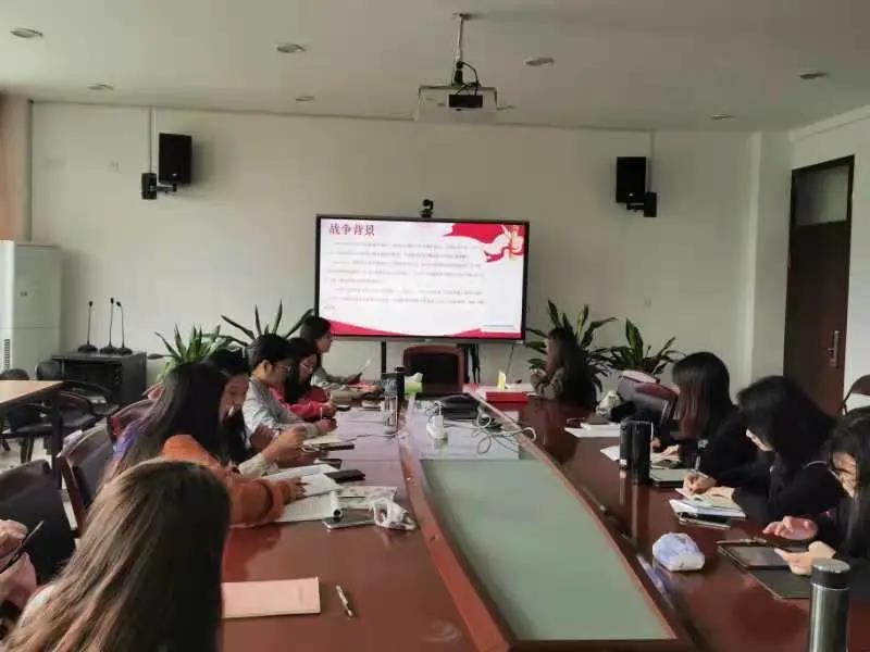 为缅怀即将到来的抗美援朝纪念日,2021年10月21日,免费色情片 第一党支部结合近期热映的爱国主义教育电影《长津湖》,在免费色情片 213会议室举办了纪念抗美援朝运动党课学习暨主题党日活动,本次党日活动由支部书记黄莹主持。