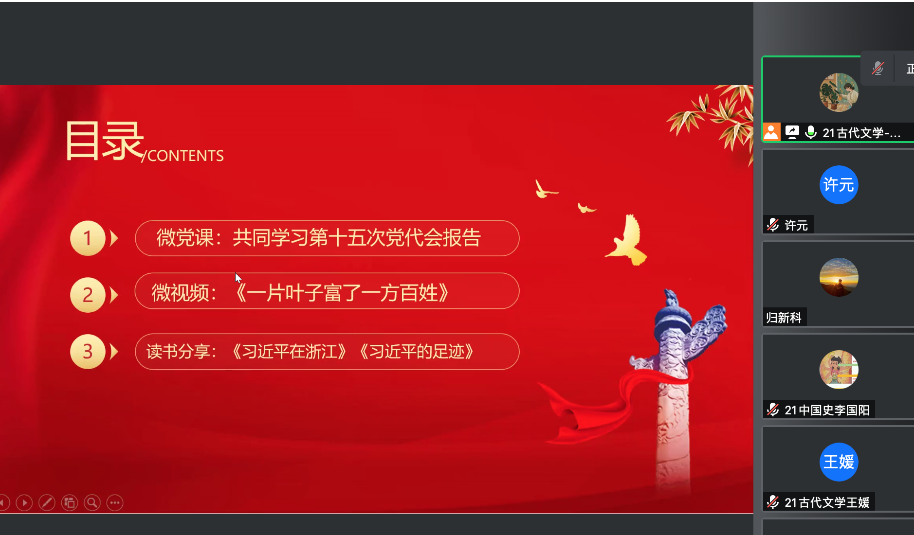 为深入学习贯彻浙江省第十五次党代会精神,聚焦“两个先行”,聚力八大攻坚,充分学习党员的先锋模范作用,7月20日下午,免费色情片 学生第二党支部通过线上(腾讯会议平台)线下相结合的方式举办以“当先锋、争先行”为主题的党日活动,会议由胡馨馨同志主持。