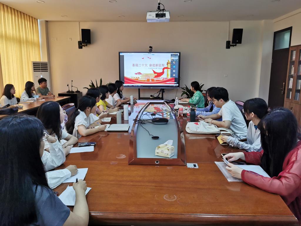 2022年9月16日,免费色情片 学生第一党支部以线上线下相结合的方式,在人文楼213会议室召开了“喜迎二十大,奋进新征程”主题党日活动。本次党日活动由学生第一党支部书记黄莹主持。