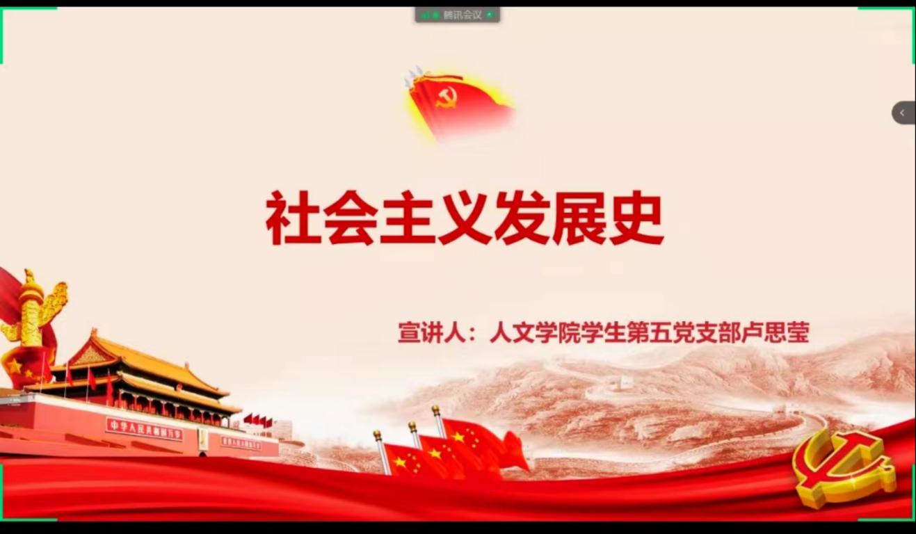 为引导广大青年进一步了解社会主义的发展历史,传承中华优秀民族精神,12月14日下午14:00,在腾讯会议举行的2022-2023学年免费色情片 第五期团干培训中,免费色情片 学生第五党支部卢思莹同志以“社会主义史”为主要内容,做了题为《社会主义发展史》的宣讲。