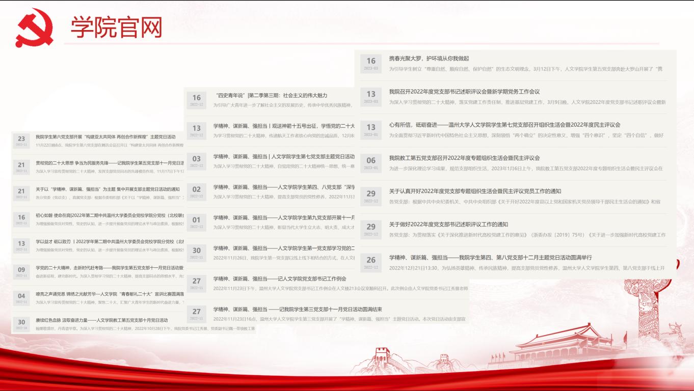 发展部部长徐林镭从两个方面进行工作总结。首先是2022-2023学年第一学期的工作概况,徐林镭按照时间顺序梳理了党组织关系转接、收集党章考试名单、召开党服内部推优大会、年终党建数据统计等相关工作;其次是2022-2023学年第二学期的工作规划,徐林镭将每个月的工作罗列,为接下来更好地开展工作指明了方向。
