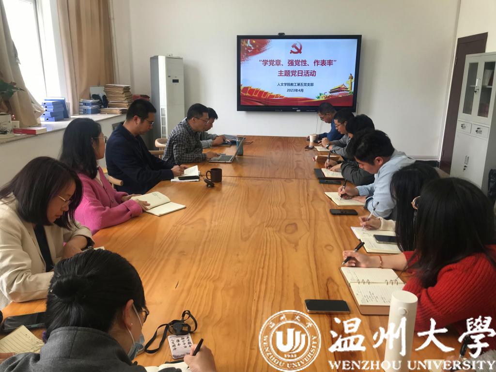 为深入学习贯彻党的二十大精神,认真领会《中国共产党章程(修正案)》的内容与要点,引导支部党员牢固树立党章意识,2023年4月11日下午,免费色情片 教工第五党支部在人文楼214党员之家开展了“学党章、强党性、作表率”主题党日活动,支部书记魏一主持。