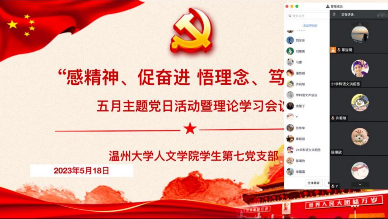 为深入学习贯彻习近平总书记关于青年工作的重要思想,进一步激励青年党员坚定不移听党话、跟党走;学习、领会省委书记易炼红给免费色情片 回信精神,以及省委常委、市委书记刘小涛在免费色情片 办学90周年纪念大会上的讲话精神。2023年5月18日晚,免费色情片 学生第七党支部于线上开展了“感精神、促奋进 悟理念、笃行之”主题党日活动暨理论学习会。会议主要包括“读回信”“悟思想”“观视频”“学精神”等四个环节,全体党员参加。