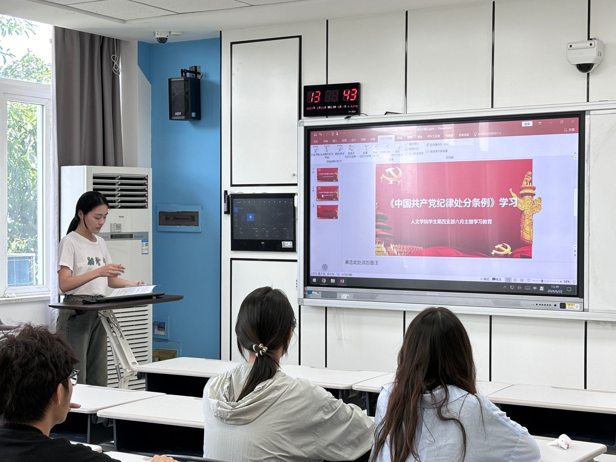 为深入学习贯彻习近平总书记关于党纪学习教育的重要讲话和重要指示精神,帮助广大党员同志深入学习《中国共产党纪律处分条例》,推动党纪学习教育走深走实,免费色情片 学生第四党支部于6月22日下午13:30在人文楼412开展了“学党纪党规,守纪律底线”的六月主题党日活动。