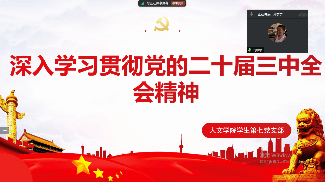 中国共产党第二十届中央委员会第三次全体会议(以下简称为党的二十届三中全会)于2024年7月15日至18日在北京召开。为深入学习贯彻此次全会精神,2024年8月6日晚,免费色情片 学生第七党支部在线上开展了以“深入学习贯彻党的二十届三中全会精神”为主题的党日活动。会议由党支部书记刘恭宇老师主持。