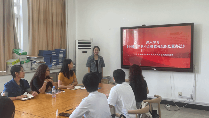 为了保持党员队伍的先进性和纯洁性,严格落实党员管理规定,免费色情片 学生第三党支部于9月13日上午10:00在免费色情片 214党员之家开展主题为“深入学习《中国共产党不合格党员组织处置办法》”的主题学习会暨九月主题党日活动。