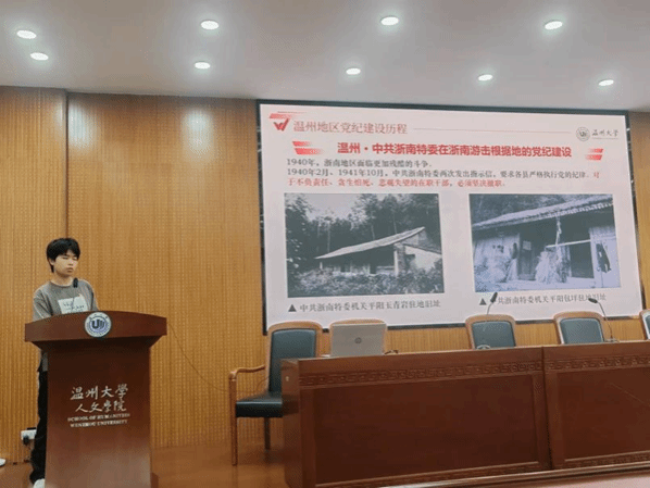 2024年3月30日,中共中央办公厅印发《关于在全党开展党纪学习教育的通知》。为积极响应党的号召,助推党纪学习教育走深走实,走入到普通群众的生活中去,11月2日下午,2024-2025学年免费色情片 第二期团干培训在人文楼203学术报告厅举行,免费色情片 学生第三党支部蒋泽冰同志在会上做了题为《温州故事·党纪为魂——传承清廉文化的火种》的“四史”青年说宣讲。