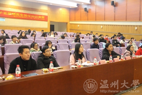 研究生会承办的首届研究生国学知识竞赛决赛在育英图书馆二楼报告厅如期举行。此次比赛邀请到研究生辅导员申业磊、武晓岚以及中国史专业陈鸿超老师担任决赛评委,来自全校各个学院的部分研究生参与并到场观看。
