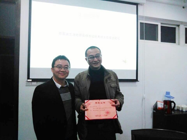 学生工作的基本情况,内容包括“月形象班级”、“院优良学风班”的评比制度,2017年班级学生获奖情况,班级学生进退步情况,班级考勤情况等。之后,学院党委副书记朱启鑫老师为荣获“市级优秀班主任”称号的洪之渊老师颁发了荣誉证书,同时,洪之渊老师受邀为在座班主任老师进行了工作分享,他从抓学生学习、尊师重教以及重视学生的独立性等三个角度,和大家交流了宝贵的经验。最后,党委副书记朱启鑫老师为本次会议进行总结讲话,他对班主任工作表示认同,其中要特别关注重点学生,真正做到用心关爱学生,用情关爱学生。