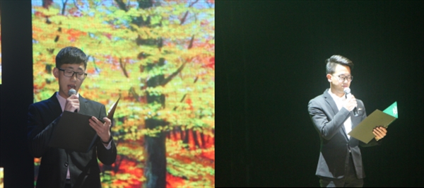 中英文诗《未选择的路》的朗诵,两位同学用不同的语言朗诵这一篇诗