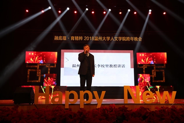 ,中文外语,中学西学,放眼世界文明;传承精粹,瓯越春秋,永嘉文脉,守正创新,广而告之。他以此鼓励全院师生在新的一年中携手共进、砥砺前行。薪火相传,百川入海和日道为新,