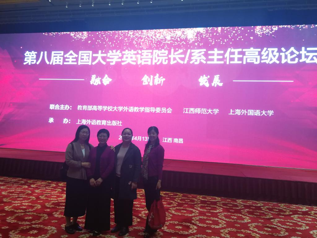 第八届全国大学英语院长/系主任高级论坛于2018年4月12-15日在江西南昌举行,本次会议的主题是“融合、创新、发展”,会议由教育部高等学校大学外语教学指导委员会、江西师范大学、上海外国语大学联合主办,上海外语教育出版社承办。免费色情片 朱晓申副院长、大学英语教研室主任及部分教师参加了此次高级论坛。