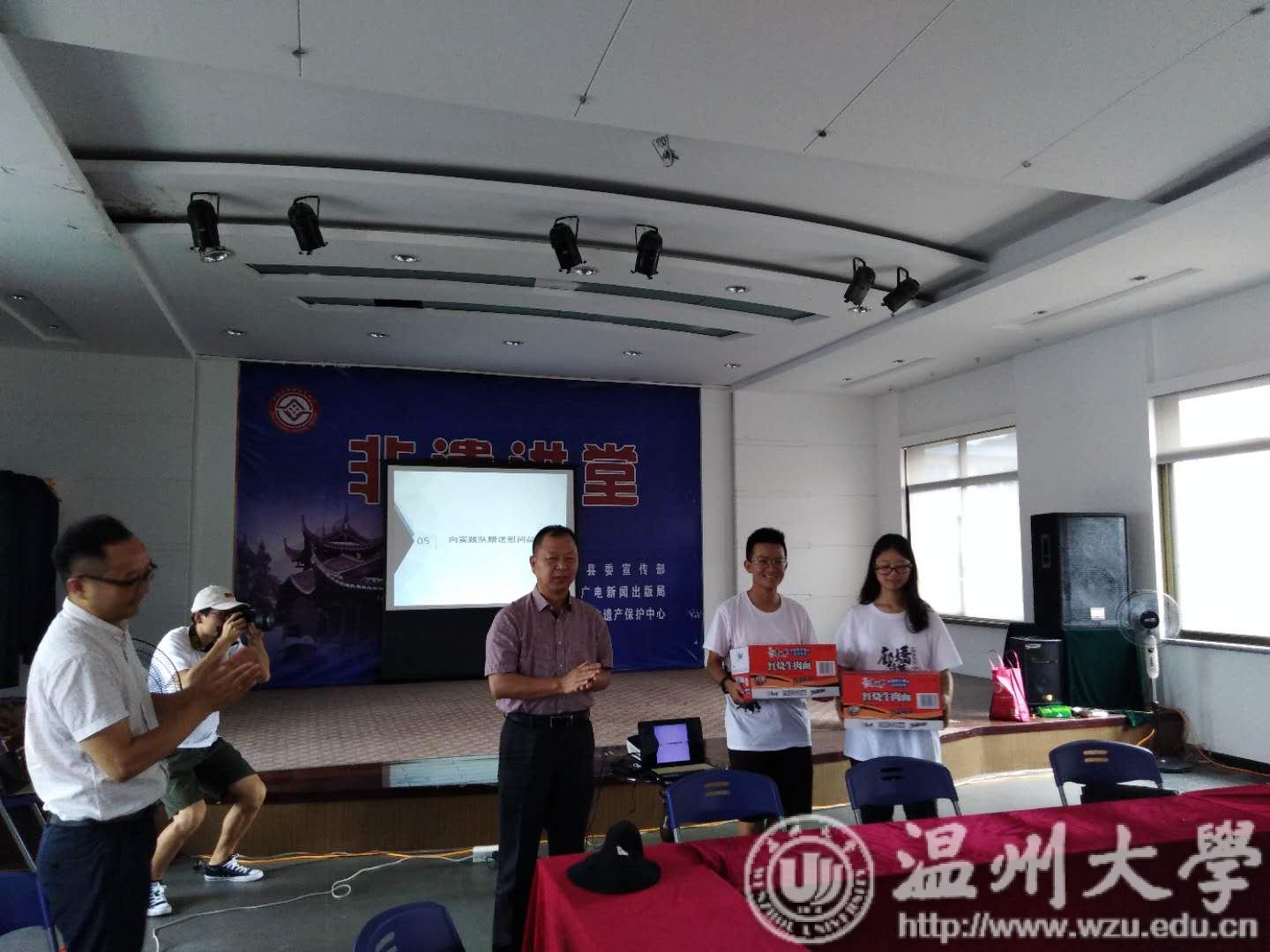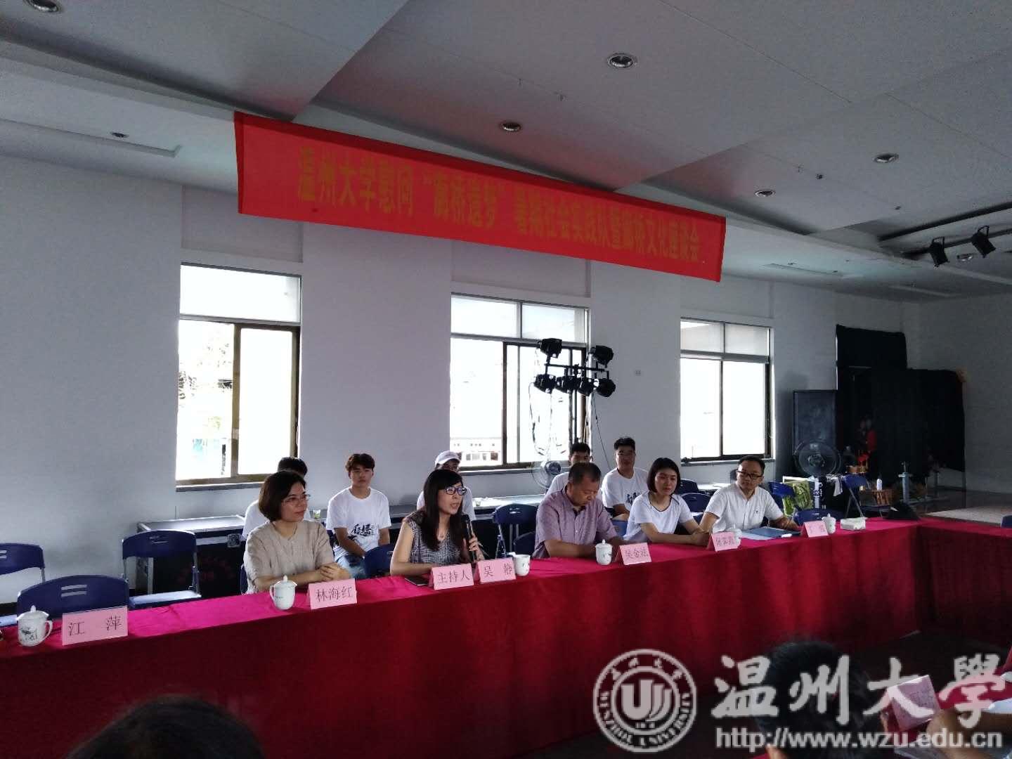 7月17日下午,校党委委员、纪委书记吴金法,在我院党委书记吴静、校团委书记屠霁霞等陪同下,赶到泰顺县罗阳镇非遗中心,看望我院廊桥遗梦暑期社会实践队。泰顺县文广新局林成起委员,泰顺县非遗中心鲍厚济主任,泰顺县廊桥研究保护中心庄通副主任热情接待。