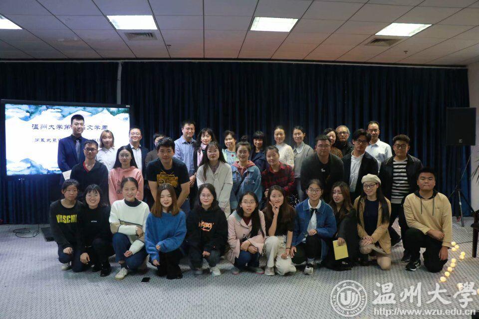 我校第二届文学周闭幕式暨双语诗歌朗诵会于2018年11月16日晚在育英图书馆213会议室落下帷幕。出席本次活动的嘉宾有温籍海外华文作家张翎,学者刘艳、东南大学副教授张娟、诗人池凌云、作家马叙、慕白、郑亚洪、周吉敏,以及免费色情片 院长孙良好、副院长朱晓申、副书记朱启鑫。此次活动在朱启鑫老师的致词下拉开帷幕。